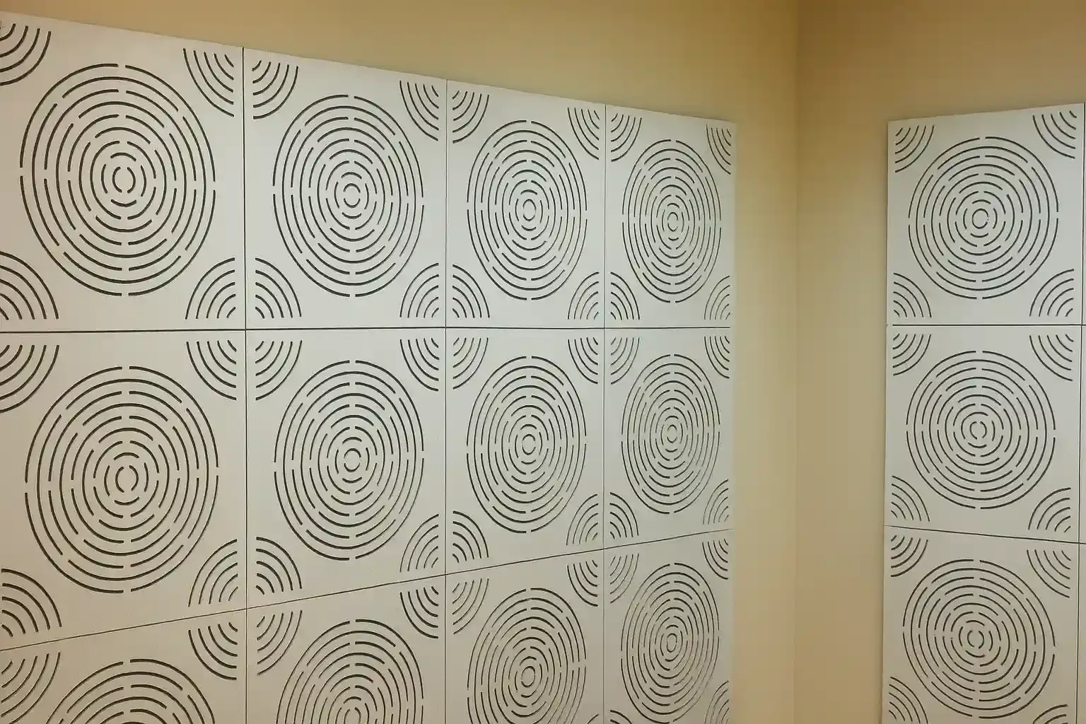 - Panouri acustice montate pe perete, cum ar fi WAVO sau TETRIS de la DECIBEL, pentru a absorbi reflexiile de frecvență medie și înaltă.